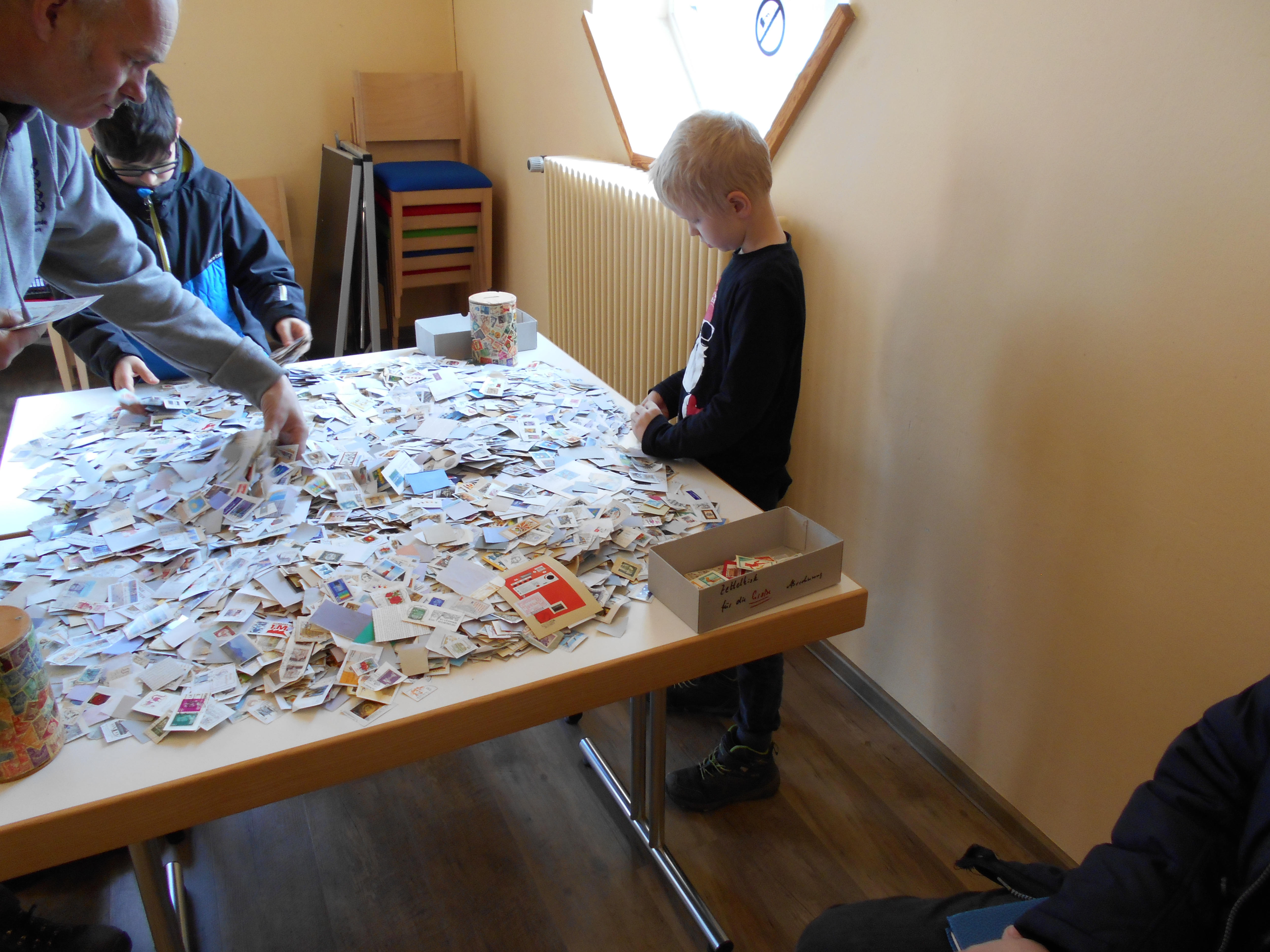 Natürlich durfte für unsere jungen Besucher die Briefmarkenwühlecke nicht fehlen: