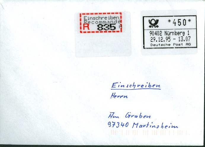 wer kann zu diesen Nürnberger Einschreib-Aufklebern etwas mitteilen? War das nur ein zeitlich begrenzter Testlauf? Gibt es die auch aus anderen Postorten?