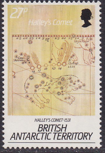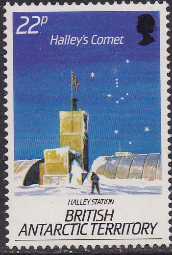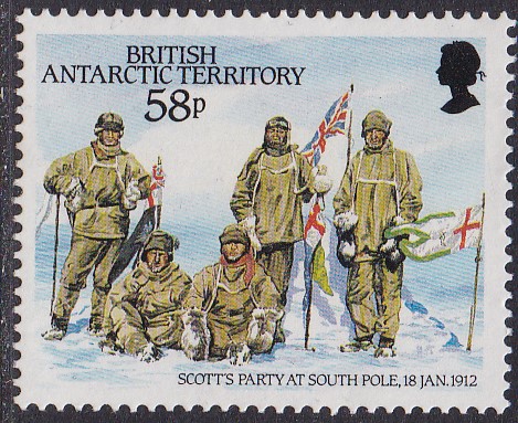 Die Marke zu 24 Pence (MiNr 141) der Serie "75. Jahrestag der Ankunft von Robert Falcon Scott am Südpol" zeigt das Segelschiff "Discovery" am "Hut Point".
