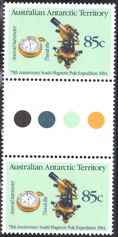 Zu dieser Serie gehört auch noch ein zweiter Wert (MiNr 62) mit der Abbildung eines Barometer und eines Theodoliten.