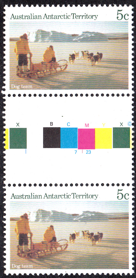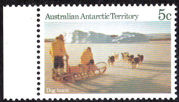 1984/85 erschien in den Australischen Gebiete in der Antarktis eine Freimarkenserie "Landschaften". Aus dieser Serie hier die Marke zu 5 Cent mit der Abbildung Hundeschlitten bei Mawson (MiNr 63).