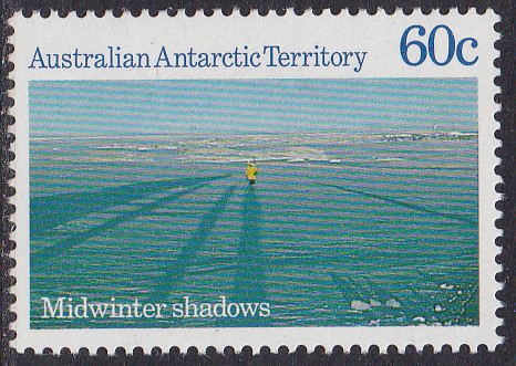 Die letzte Marke dieser Serie (MiNr 78) zeigt uns lange Winterschatten bei der Casey-Station.