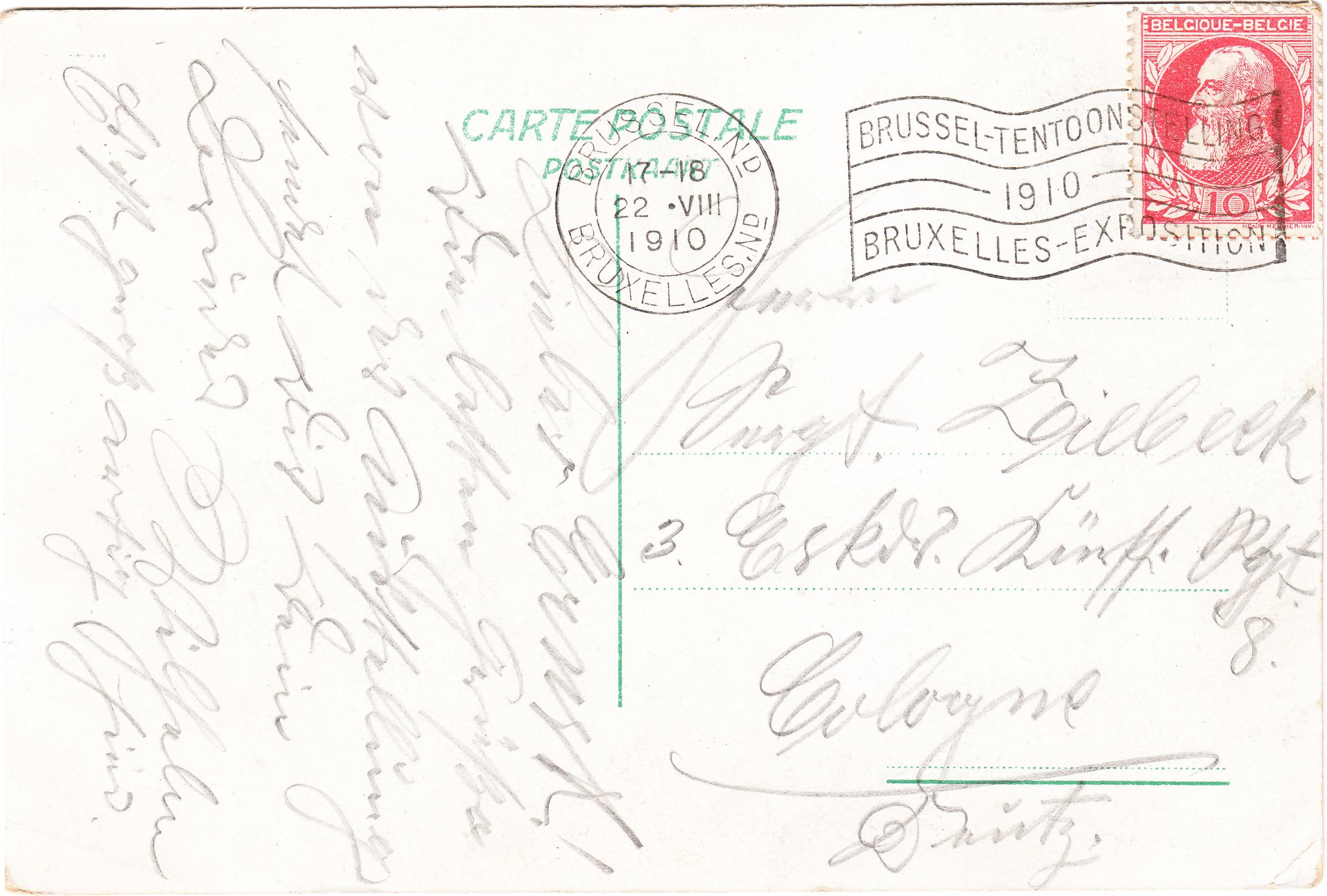 Die Ansichtskarte wurde am 14.09.1910 als Gruß von der Ausstellung nach Haßloch in der Pfalz geschickt. Die Pfalz gehörte bereits seit 1816 zu Bayern: