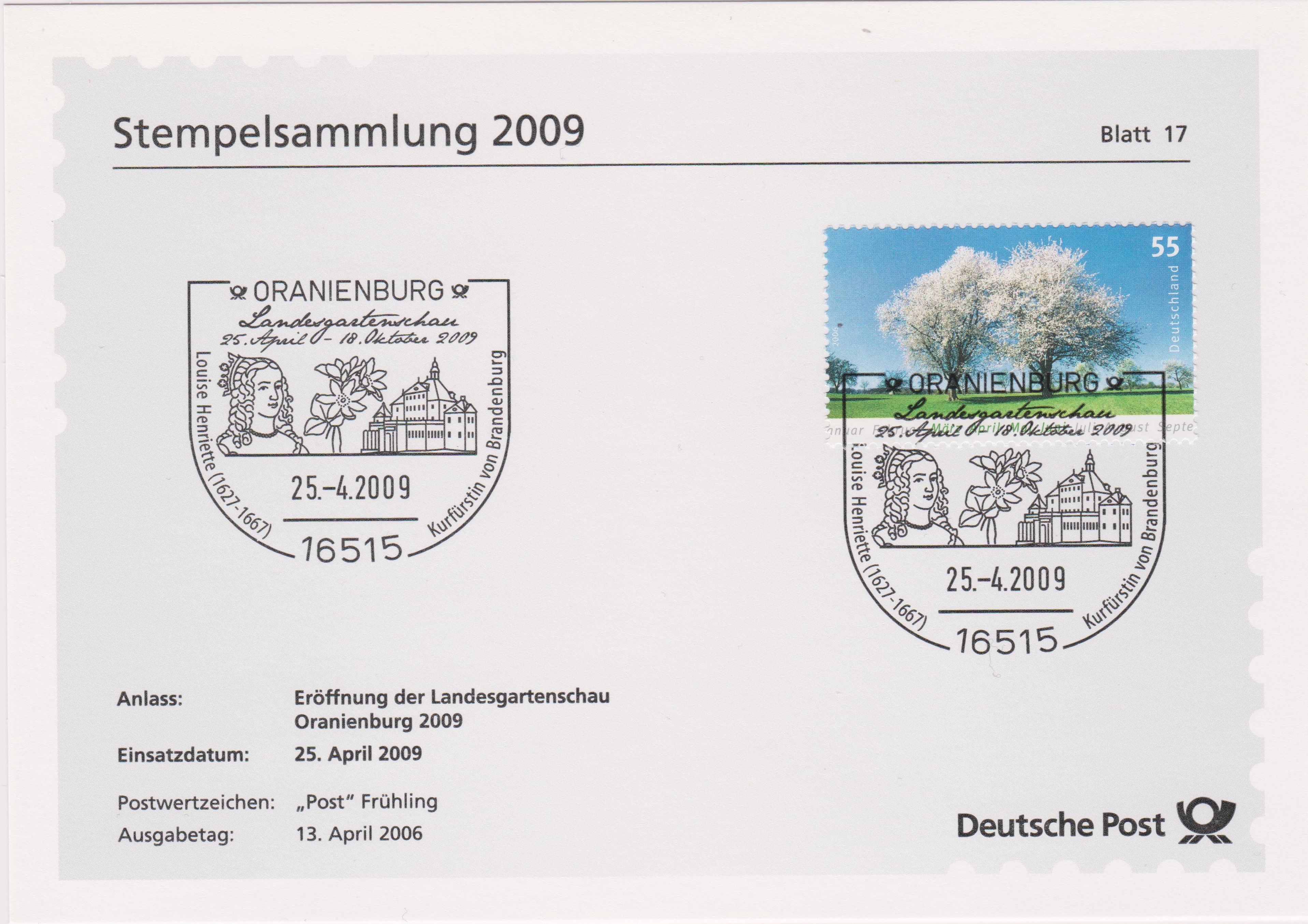 Die Deutsche Post würdigte dieses Ereignis am Eröffnungstag mit diesem Sonderstempel, hier auf "Blatt 17" der "Stempelsammlung 2009":