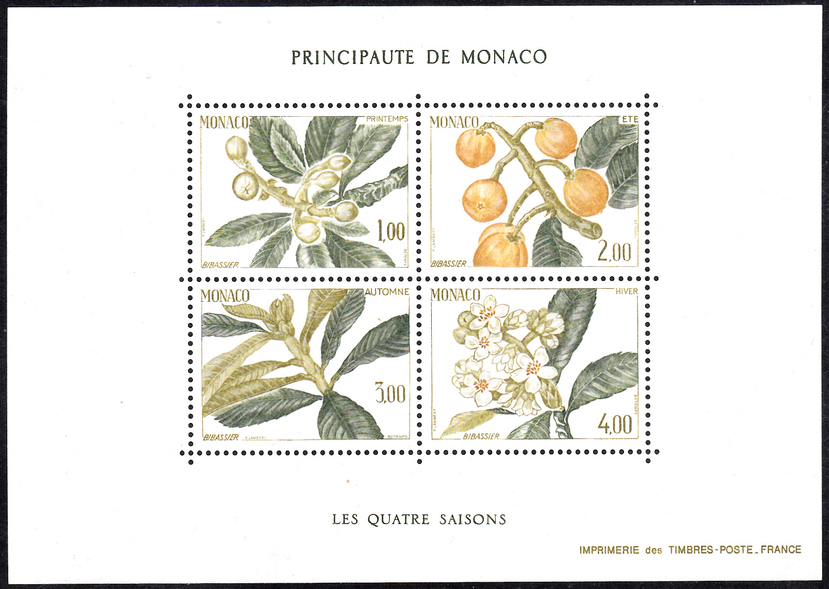 Und nun folgt die Marke aus Monaco (MiNr 1691) mit einen Zweig der Wollmispel (Eriobotrya japonica) im Herbst.