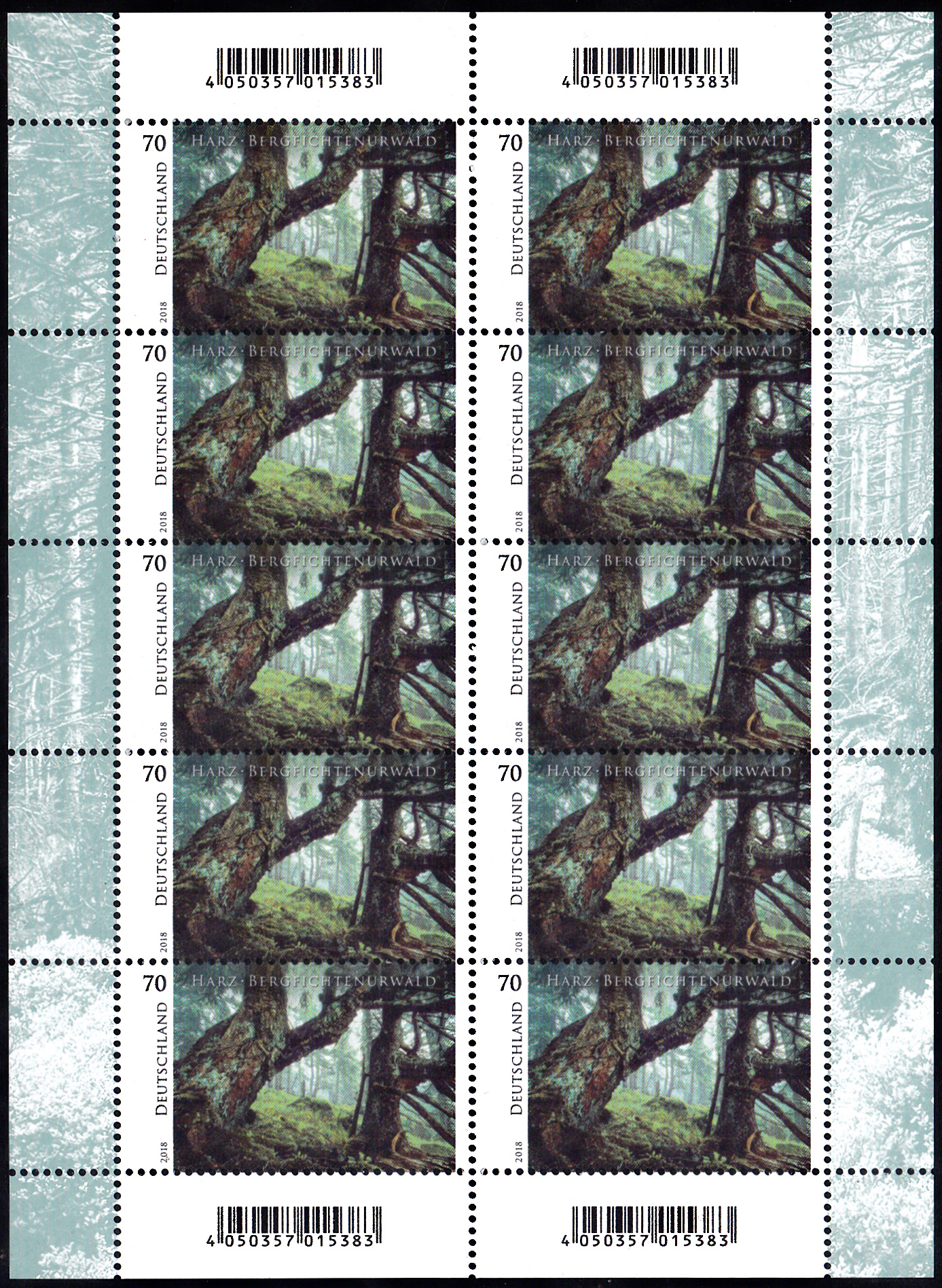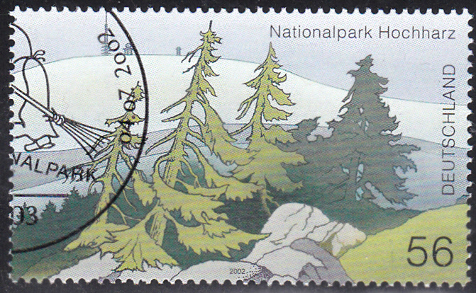 In der Reihe "Deutsche National- und Naturparks" der Deutschen Post ist auch dies Marke (MiNr 2268) mit der Abbildung einer Landschaft im Harz mit Fichten. Die Marke stammt aus Block 59.