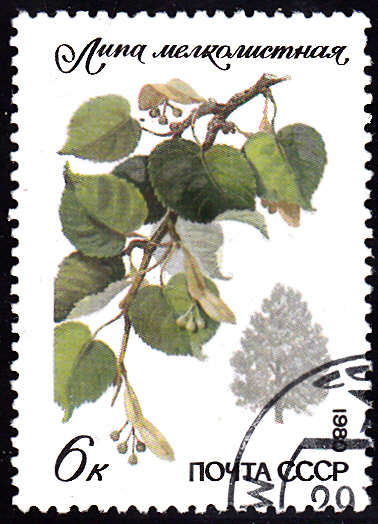 Diese Marke der Sowjetunion (MiNr 5004) bildet einen Zweig der Winterlinde (Tilia cordata) ab.