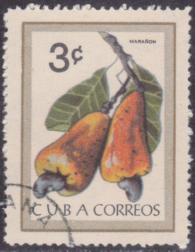 Auf einer Marke aus Brasilien (MiNr 1844) sind wir Cashew-Früchte (Anacardium occidentale) abgebildet. Michel nennt sie Kaschu-Früchte (Anacardium occidentale).