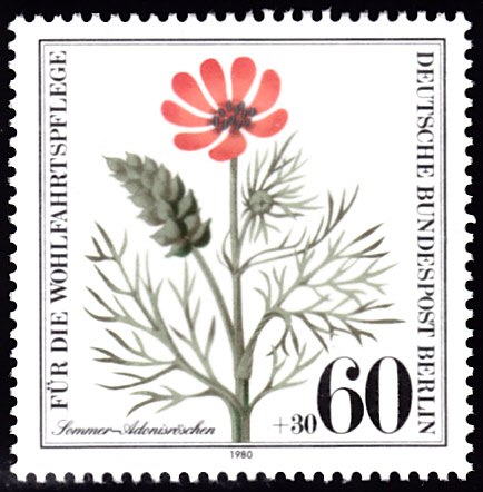 Auf dieser Marke aus Berlin (MiNr 631) ist ein Sommer-Adonisröschen (Adonis aestivalis) zu sehen.