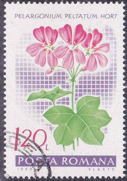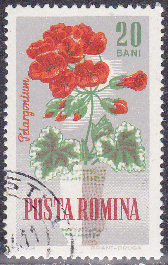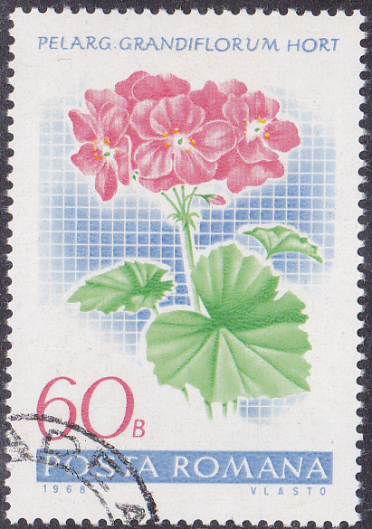 Diese Marke aus Rumänien (MiNr 2690) zeigt eine Edelgeranie (Pelargonium Grandiflorum Hybr.)