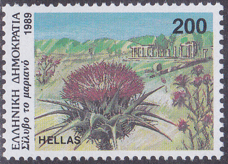 Auf einer Marke aus Griechenland (MiNr 1737) sehen wir eine Mariendistel (Silybum marianum).