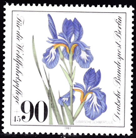 Auf dieser Marke aus Jugoslawien (MiNr 1035) wird die Blüte einer Deutsche Schwertlilie (Iris ×germanica) gezeigt.