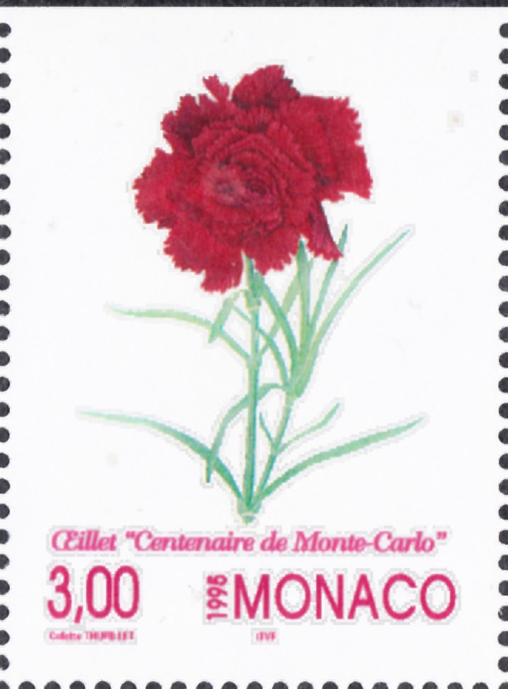 In einer Serie "Blumenzüchtungen" ist in Monaco diese Marke (MiNr 2267) mit der Nelke "Centenaire de Monte-Carlo" erschienen.