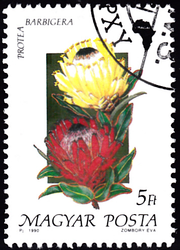 In der Serie aus Ungarn gibt es auch eine Marke (MiNr 4078 A) mit Blüten einer Protea barbigera.