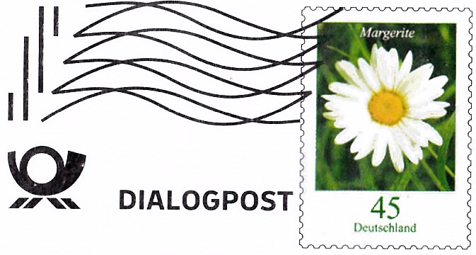 Umschlag im Format 229x162 mm mit einem Wertstempel mit der 45 Cent Marke (MiNr 2451) aus der Dauerserie "Blumen" mit dem Motiv "Margerite" mit aufgedruckter Zähnung. Der Wertstempel ist mit einer Welle "Dialogpost" entwertet.