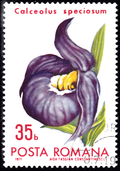 Auf dieser Marke aus Rumänien (MiNr 2941) wird ein Frauenschuh (Calceolus speciosum) gezeigt.