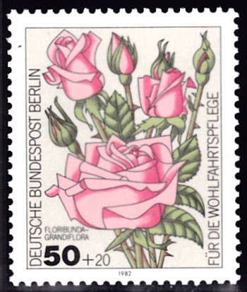 Auch die Wohlfahrtsmarken der Deutschen Bundespost Berlin aus dem Jahre 1981 zeigen Gartenrosen.