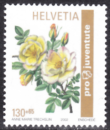 Eine weitere Marke dieser Serie der Schweiz (MiNr 1814) zeigt die Tose mit dem Namen "Frühlingsgold".