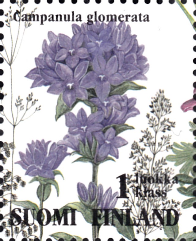 In der gleichen Ausgabe aus Finnland gibt es auch eine Marke (MiNr 1259) mit einer Knäuel-Glockenblume (Campanula glomerata).
