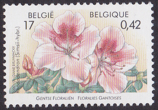 Zur Genter Blumenschau ist 2000 in Belgien diese Marke (MiNr 2955) mit einer Azalee (Rhododendron simsii hybr.) erschienen.