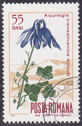 Eine Marke aus Rumänien (MiNr 2596) aus der Serie "Karpaten-Flora" zeigt eine Aquilegia transsilvanica.