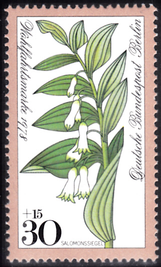 Auf einer Wohlfahrtsmarken 1978 aus Berlin (MiNr 573) ist eine Vielblütige Weißwurz (Polygonatum multiflorum) zu sehen. Michel nennt sie Salomonssiegel (Polygonatum multiflorum).