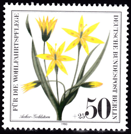 Au dieser Marke aus Berlin (MiNr 630) werden Blüten des Acker-Gelbstern (Gagea villosa) gezeigt.