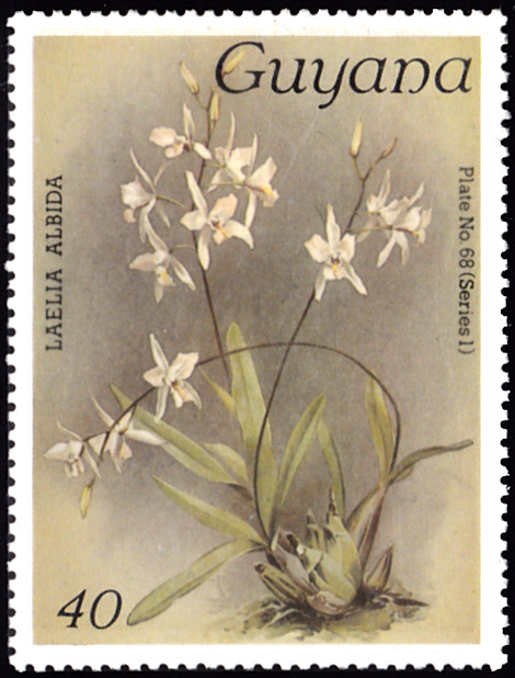 Auf dieser Marke aus Guyana (MiNr 1703) ist eine Laelia albida abgebildet.
