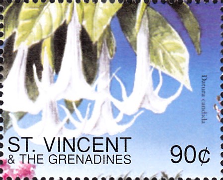 In einer Serie Blumen ist in St. Vincent diese Marke (MiNr 3700) mit einer Engelstrompete erschienen. Auf der Marke wird noch der alte Name Datura candida genannt. Bei der Abbildung auf dieser Marke handelt es sicher um eine Zuchtform.