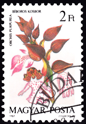 Dies Marke aus Ungarn (MiNr 3922 A) zeigt die Blüten des Purpur-Knabenkraut (Orchis purpurea).