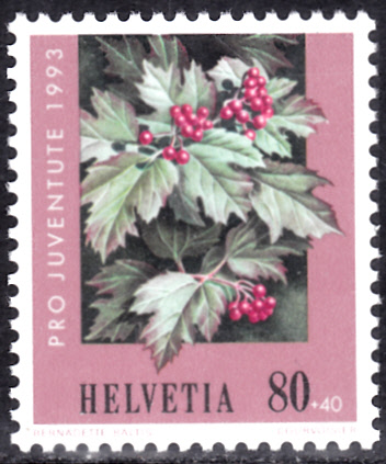 Auch in der Schweiz ist eine Marke (MiNr 1514) mit einer Abbildung zum Gemeinen Schneeball (Viburnum opulus) erschienen.