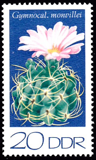 In einer Serie der DDR ist diese Marke (MiNr 1925) mit einem Igelkaktus der Art Gymnocalycium monvillei.