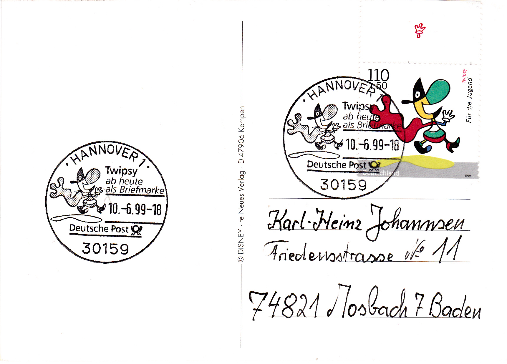 der selbstklebenden Expo-Marke haben sich vom Briefstück abgelöst bzw. lassen sich bequem ohne Wasser abziehen.