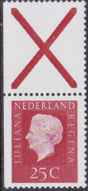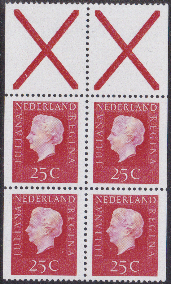 Ab 1969 erschienen Freimarken mit dem Bildnis von Königin Juliana in neuer Zeichnung. Die erste Marken sind in einem Markenheftchen erschienen. Hier zeige ich ein waagerechtes Paar aus einem Markenheftchen (MiNr Paar 910 a x Dl/Dr).