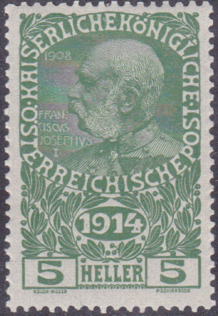 1914 wurden zwei Marken mit je 2 Heller Zuschlag für die Kriegswitwen- und -waisenhilfe mit dem Porträt von Franz Joseph I.
