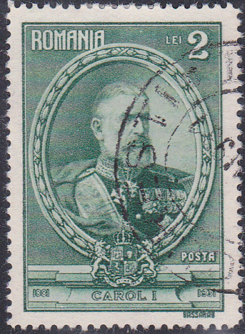Hier zeige ich eine Zwangszuschlagsmarke zu 10 Bani (MiNr 2).