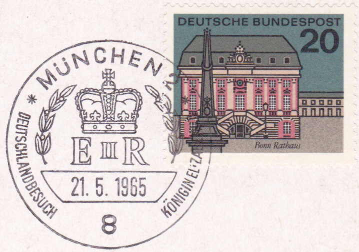 Sonderstempel aus München vom 21.5.1965 zum Besuch von Elisabeth II..