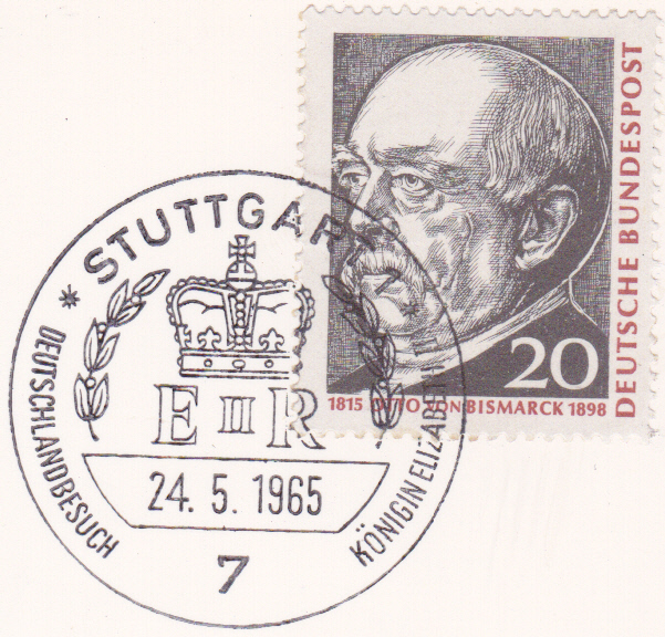 Sonderstempel aus Stuttgart vom 24.5.1965 zum Besuch von Elisabeth II..