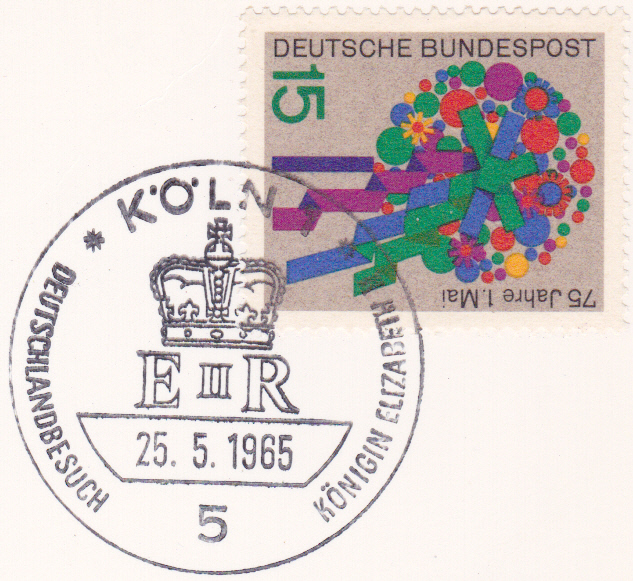 Sonderstempel aus Köln vom 25.5.1965 zum Besuch von Elisabeth II..