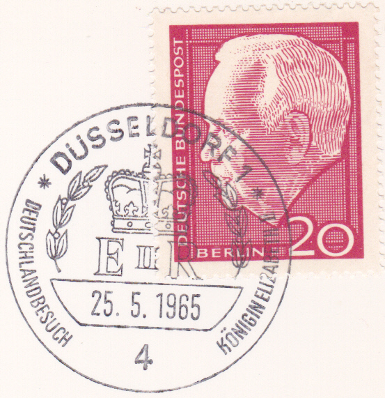 Sonderstempel aus Düsseldorf vom 25.5.1965 zum Besuch von Elisabeth II..