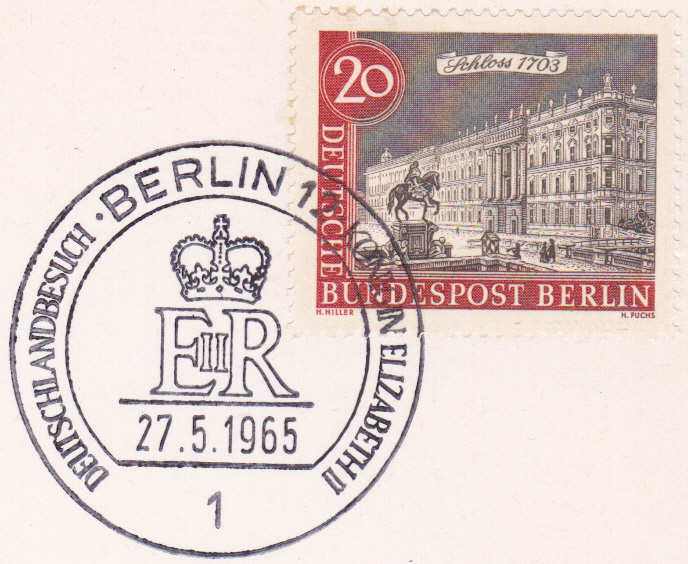 Sonderstempel aus Berlin vom 27.5.1965 zum Besuch von Elisabeth II..