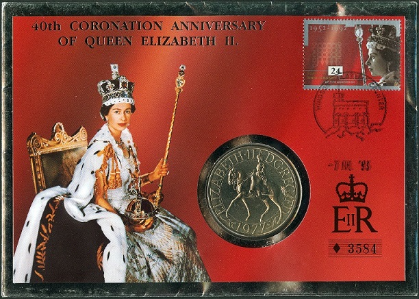 Weder im Markenbild (Marke aus 1992, siehe auch weiter oben) noch auf dem Zudruck des Numisbriefes aus dem Jahr 1993 trägt die britische Monarchin die bei der eigentlichen Krönung benutzte Edwardskrone. Sie trägt hier die so genannte Imperial Stat Crown.