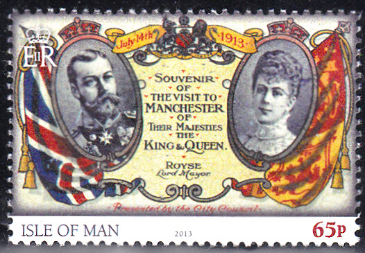 Für Großbritannien - Isle of Man erschien 2013 in einer Serie "Britische Monarchen" eine Marke (MiNr 1824) mit König George V. und seiner Frau Königin Mary (1867-1953).
