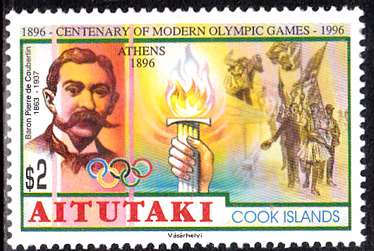 Diese Marke erschien in Aitutaki am 11. Juli 1996 zu "100 Jahre Olympische Spiele der Neuzeit; Olympische Sommerspiele, Atlanta". Auf dem Markenbikld sehen wir: Pierre de Coubertin (1863-1937), den Begründer der Olympischen Spiele der Neuzeit, eine olympische Facke und ein Foto von der Eröffnung der Olympischen Spiele 1896 in Athen.