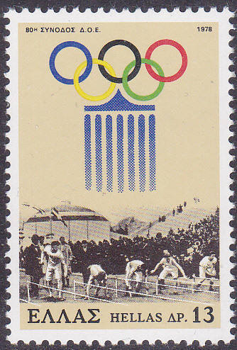 Zur 80. Session des Internationalen Olympischen Komitees in Athen ist in Griechenland eine Marke (MiNr 1313) erschienen, die den Start zum 100-Meter-Lauf bei den 1. Olympischen Spielen in Athen im Jahre 1896 und das olympisches Emblem zeigt.