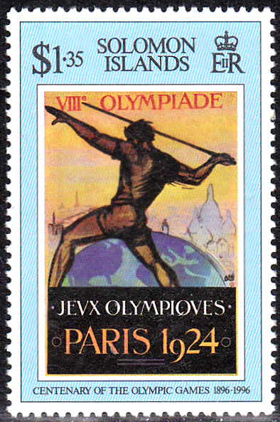 Auf den Salomon Inseln ist am 30. Juni 1996 eine Markenserie zu "100 Jahre Olympische Spiele der Neuzeit" mit Abbildungen von Werbeplakaten früherer Olympischer Spiele. Diese Marke (MiNr 917) zeigt ein Werbeplakat für die Spiele 1924 in Paris.
