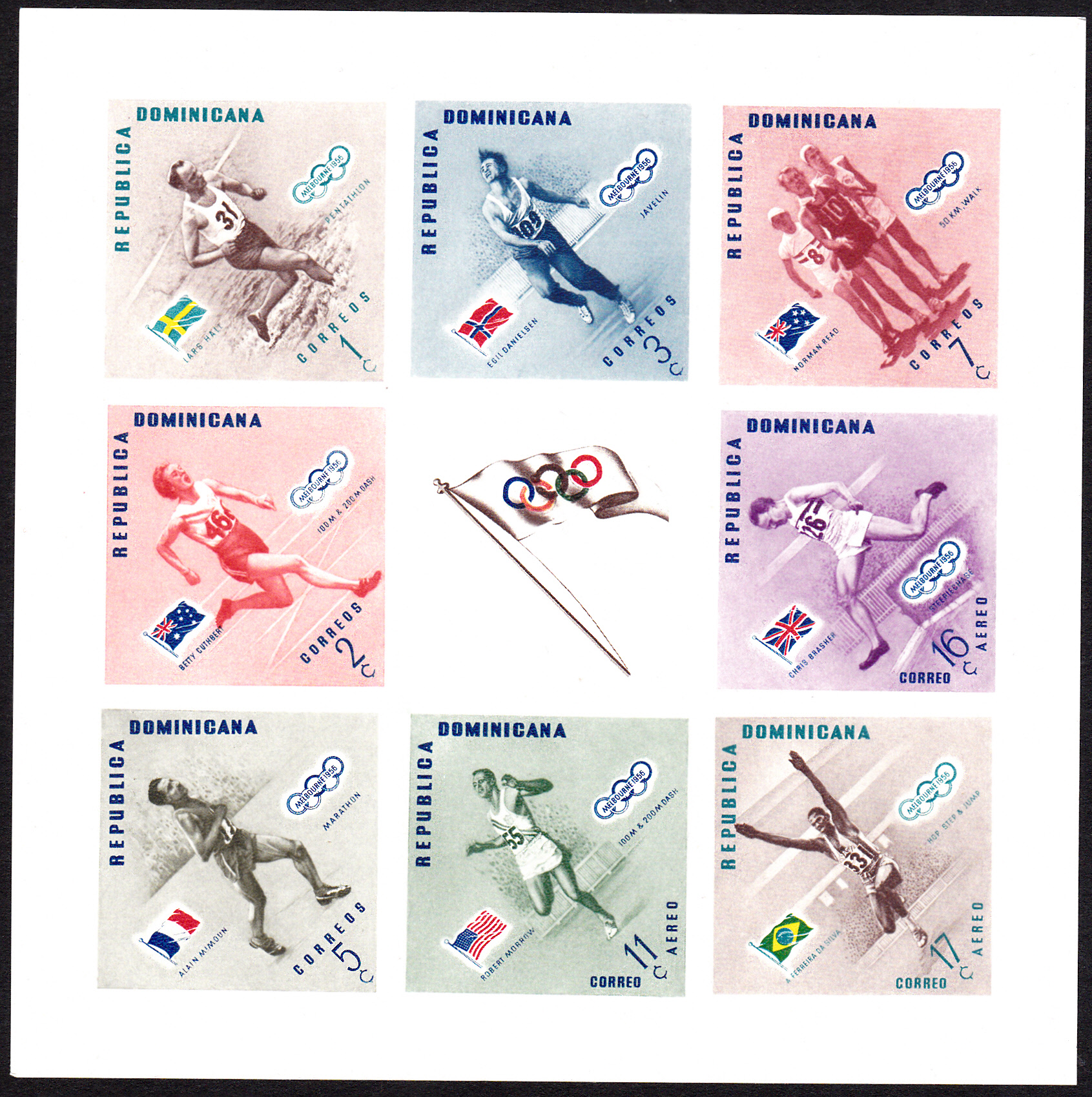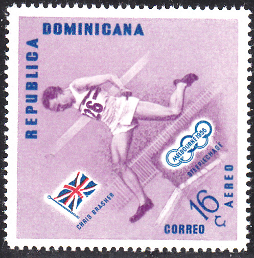 Die letzte Marke dieser Serie der Dominikanischen Republik (MiNr 592 A) zeigt ihn beim Dreisprung.