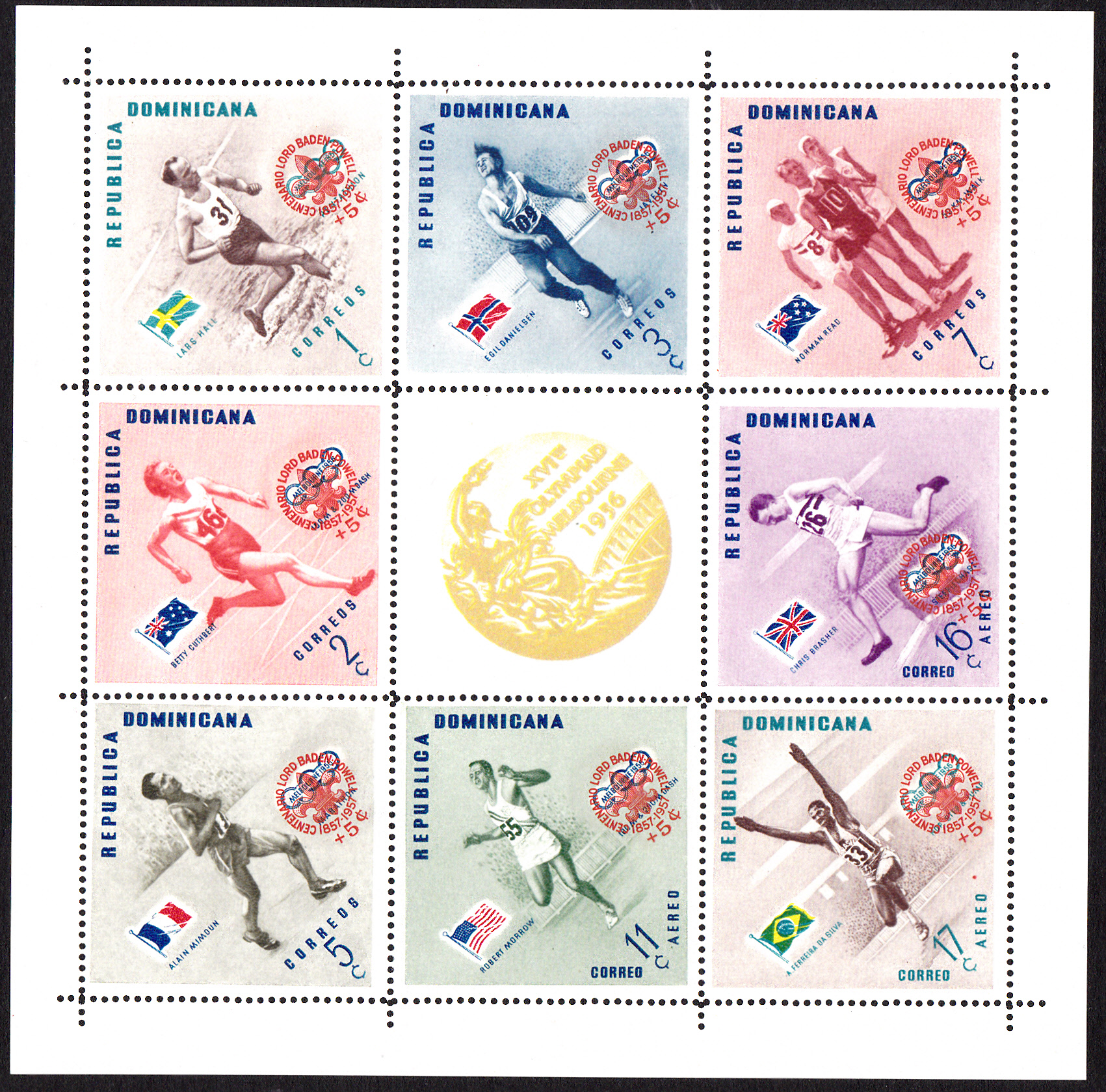 In der gleichen Serie erschien auch eine Marke (MiNr 590 A) mit dem bereits hier erwähnten dreifachen Olympiasieger Bobby Morrow.