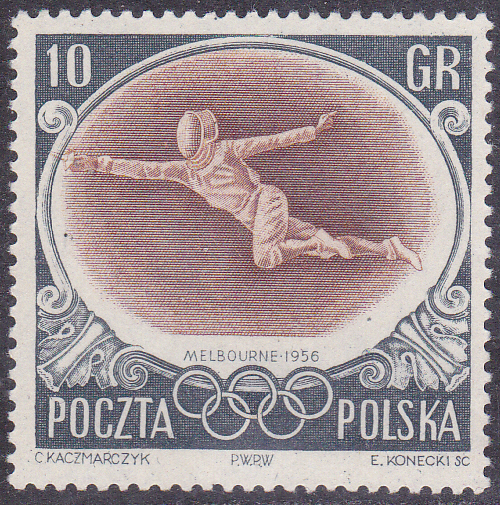 In Polen ist zu den Olympischen Spiele 1956 in einer Serie diese Marke (MiNr 984) mit einem Fechter erschienen.
