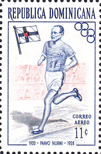 Der Neunfache Olympiasieger der Jahre 1920, 1924 und 1928, Paavo Nurmi (1897-1973, Finnland) wird auf der Marke zu 11 Cent (MiNr 565 A) gezeigt.